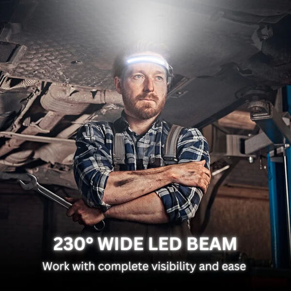 Osvijetli cijeli svoj radni prostor sa širokokutnim snopom od 230°. Ova čeona svjetiljka pruža jaku i jasnu vidljivost u svim smjerovima, što je čini idealnom za unutarnju i vanjsku upotrebu.